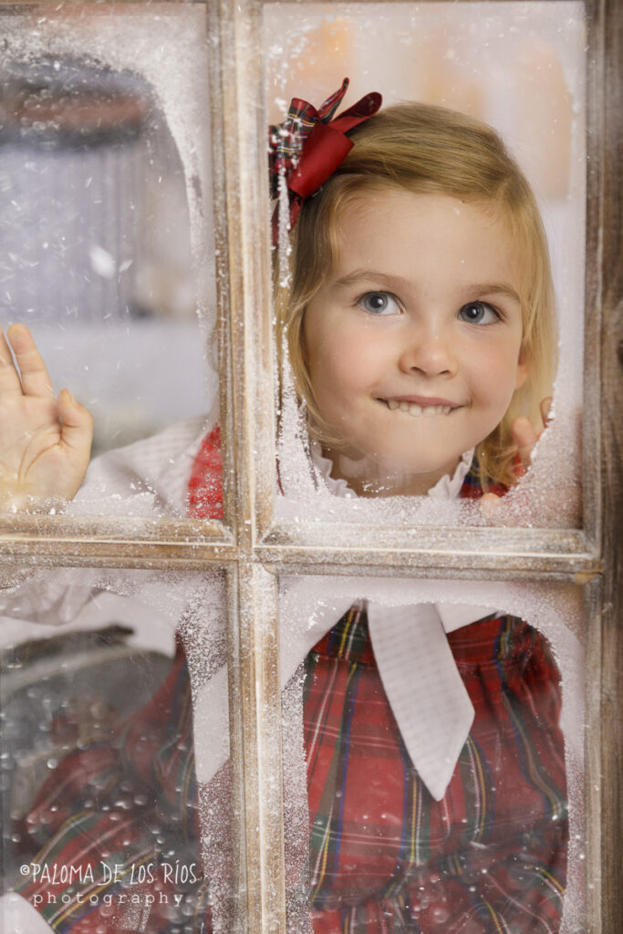 Este año dispongo de dos escenarios: El principal es una habitación navideña, es un fondo bastante grande por lo que podemos hacer también alguna foto familiar, que es algo que me suelen pedir todos los años. En este fondo también haremos las fotos con la ventana, que quedan preciosas con el exterior nevando y la habitación de fondo.