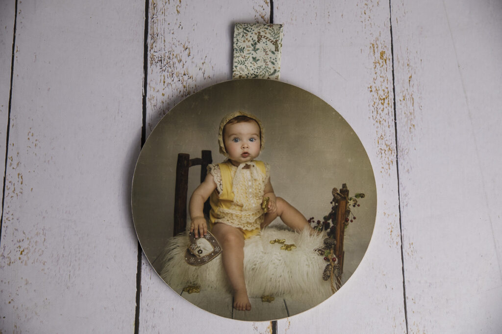 - Pack 2 colgadores circulares con grabado a 2 caras con las imágenes de tu peque, precioso para colgar en el arbol (2 uds): 14 €.